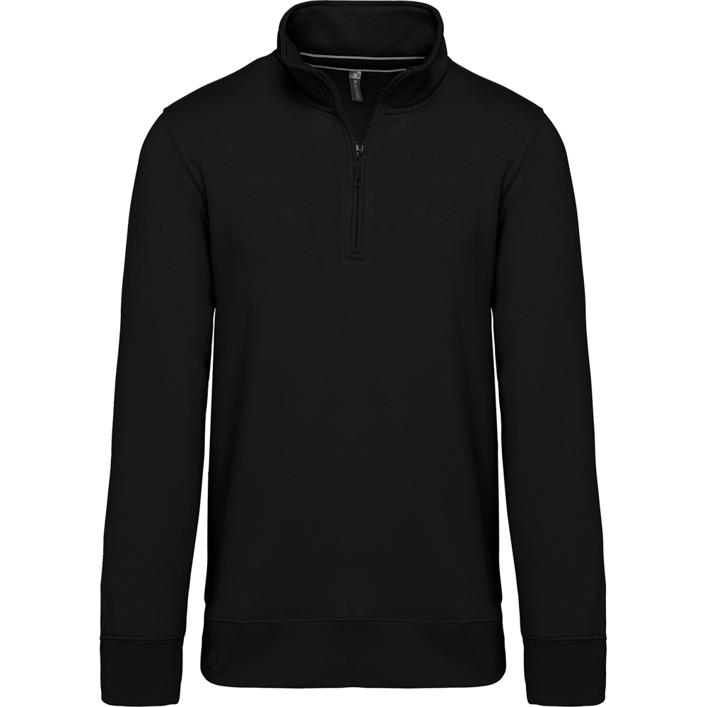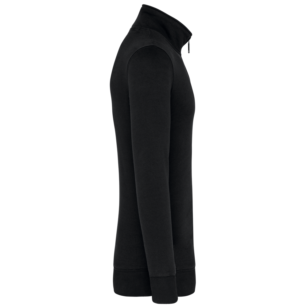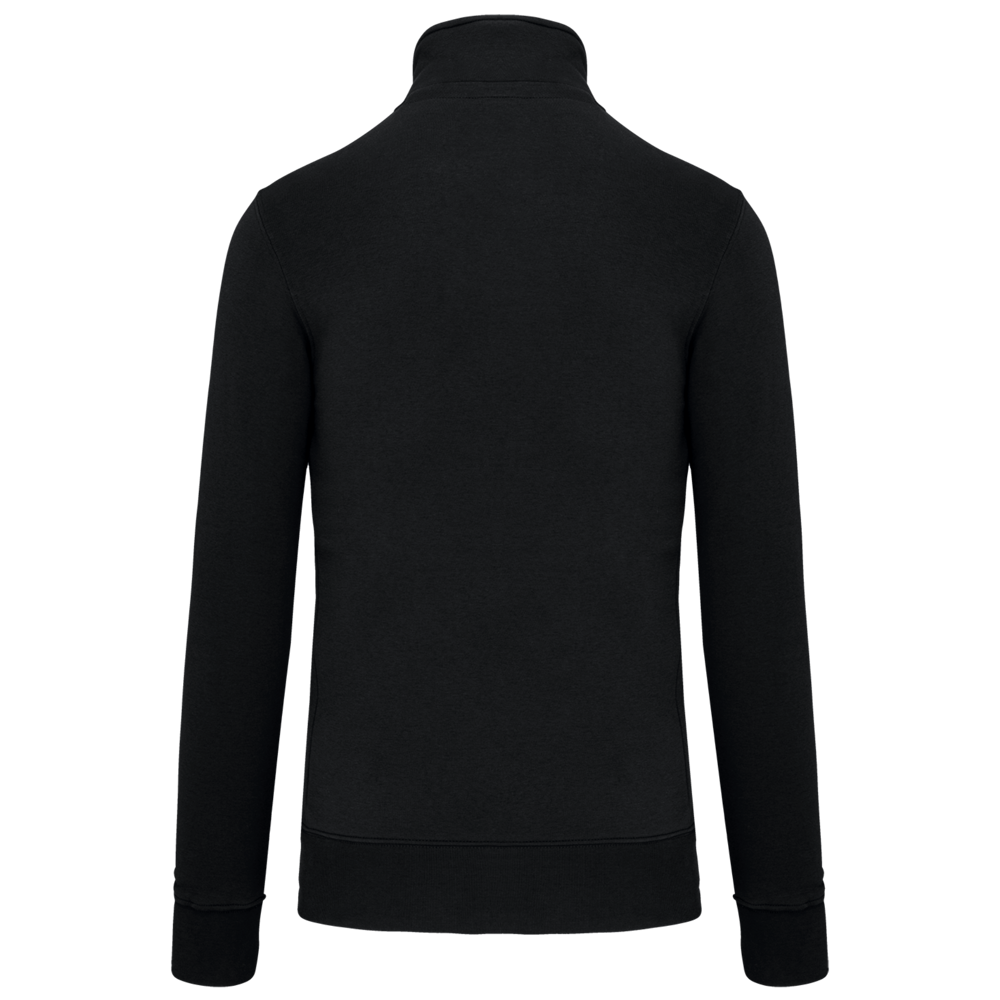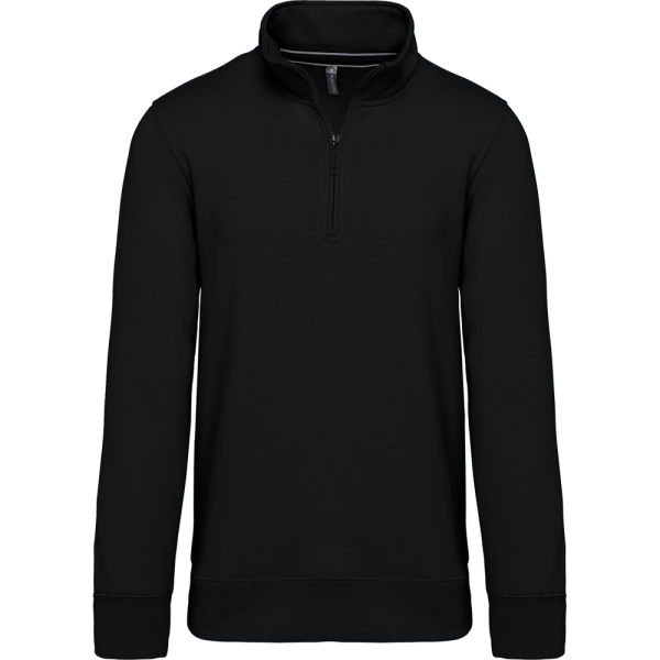 80% katoen / 20% polyester (Ash Heather : 79% katoen / 20% polyester / 1% viscose). Buitenoppervlak 100% katoen. LSF-behandeling (Low Shrinkage Fleece : voorgekrompen fleece). Aan de binnenkant geborsteld fleece 3 draden van gekamd katoen. Ingezette mouwen. Kraag met toon-op-toon plastic ritssluiting. Nektape in contrasterende kleur aan de halsopening (Navy voor de kleur Oxford Grey en Ash Heather ; Oxford Grey voor alle andere kleuren). Ribboord aan mouwuiteinden en aan de onderkant.