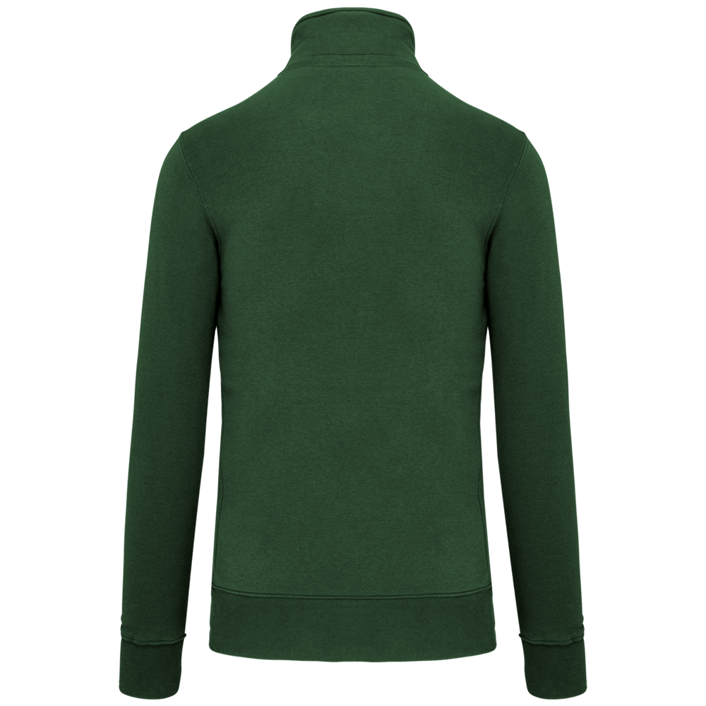80% katoen / 20% polyester (Ash Heather : 79% katoen / 20% polyester / 1% viscose). Buitenoppervlak 100% katoen. LSF-behandeling (Low Shrinkage Fleece : voorgekrompen fleece). Aan de binnenkant geborsteld fleece 3 draden van gekamd katoen. Ingezette mouwen. Kraag met toon-op-toon plastic ritssluiting. Nektape in contrasterende kleur aan de halsopening (Navy voor de kleur Oxford Grey en Ash Heather ; Oxford Grey voor alle andere kleuren). Ribboord aan mouwuiteinden en aan de onderkant.