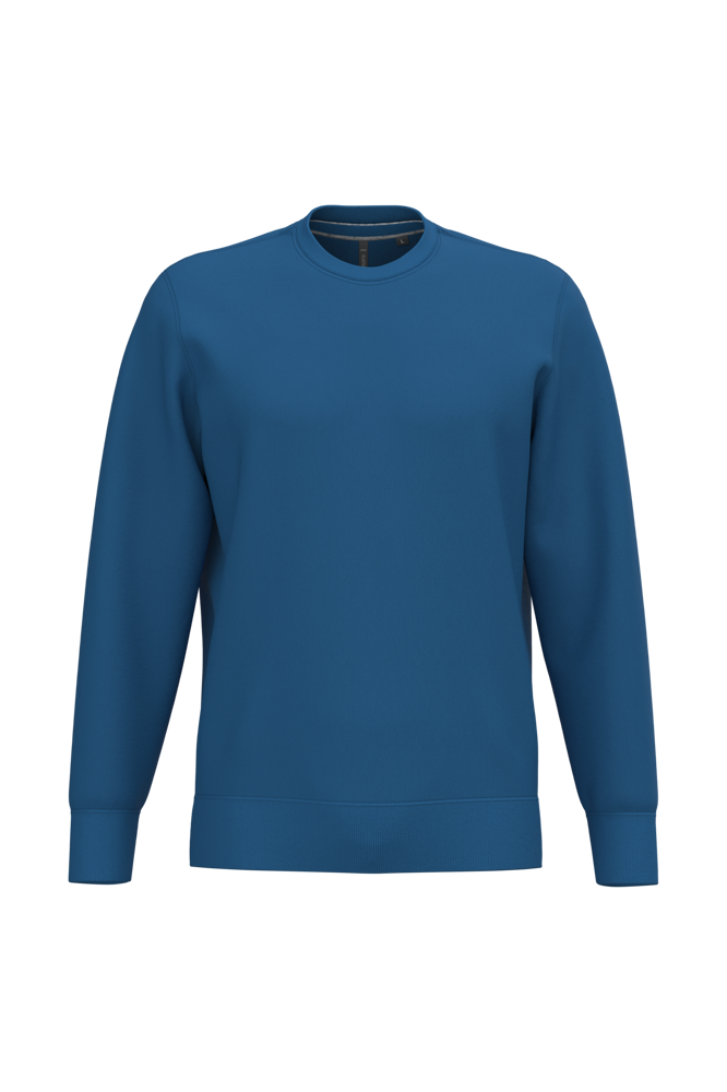 80% katoen / 20% polyester (Ash Heather: 79% katoen / 20% polyester / 1% viscose). Buitenoppervlak 100% katoen. LSF-behandeling (Low Shrinkage Fleece: voorgekrompen fleece). Aan de binnenkant geborsteld fleece 3 draden van gekamd katoen. Ingezette mouwen. Nektape in contrasterende kleur aan de halsopening (Navy voor de kleur Oxford Grey en Ash Heather ; Oxford Grey voor alle andere kleuren). Ribboord aan mouwuiteinden en aan de onderkant.
