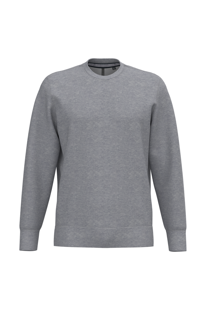 80% katoen / 20% polyester (Ash Heather: 79% katoen / 20% polyester / 1% viscose). Buitenoppervlak 100% katoen. LSF-behandeling (Low Shrinkage Fleece: voorgekrompen fleece). Aan de binnenkant geborsteld fleece 3 draden van gekamd katoen. Ingezette mouwen. Nektape in contrasterende kleur aan de halsopening (Navy voor de kleur Oxford Grey en Ash Heather ; Oxford Grey voor alle andere kleuren). Ribboord aan mouwuiteinden en aan de onderkant.