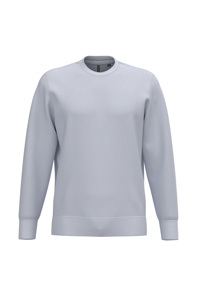 80% katoen / 20% polyester (Ash Heather: 79% katoen / 20% polyester / 1% viscose). Buitenoppervlak 100% katoen. LSF-behandeling (Low Shrinkage Fleece: voorgekrompen fleece). Aan de binnenkant geborsteld fleece 3 draden van gekamd katoen. Ingezette mouwen. Nektape in contrasterende kleur aan de halsopening (Navy voor de kleur Oxford Grey en Ash Heather ; Oxford Grey voor alle andere kleuren). Ribboord aan mouwuiteinden en aan de onderkant.