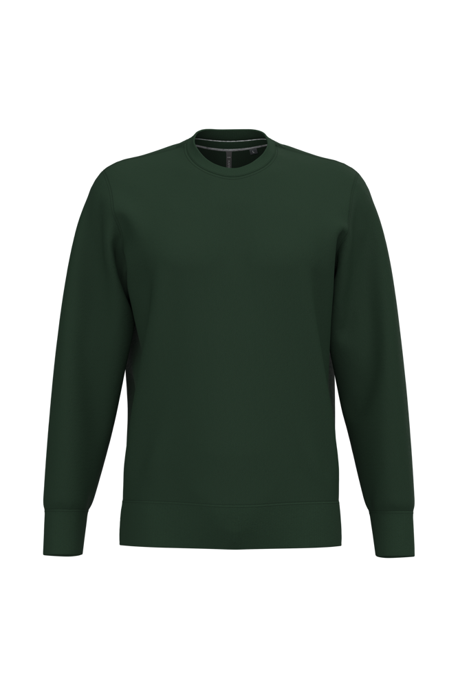 80% katoen / 20% polyester (Ash Heather: 79% katoen / 20% polyester / 1% viscose). Buitenoppervlak 100% katoen. LSF-behandeling (Low Shrinkage Fleece: voorgekrompen fleece). Aan de binnenkant geborsteld fleece 3 draden van gekamd katoen. Ingezette mouwen. Nektape in contrasterende kleur aan de halsopening (Navy voor de kleur Oxford Grey en Ash Heather ; Oxford Grey voor alle andere kleuren). Ribboord aan mouwuiteinden en aan de onderkant.