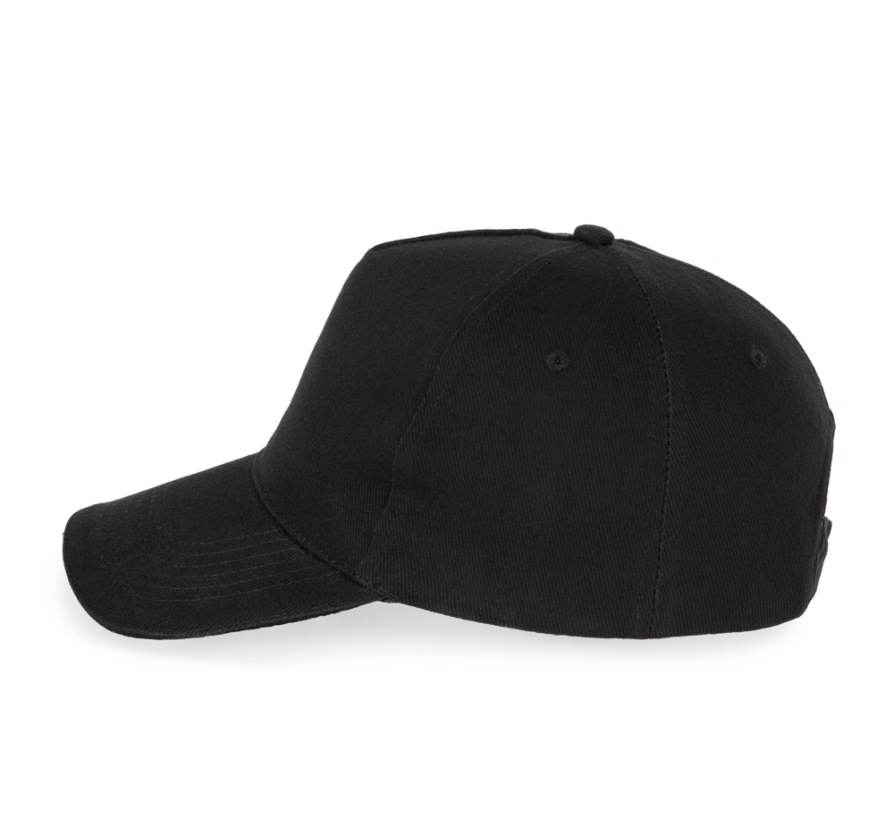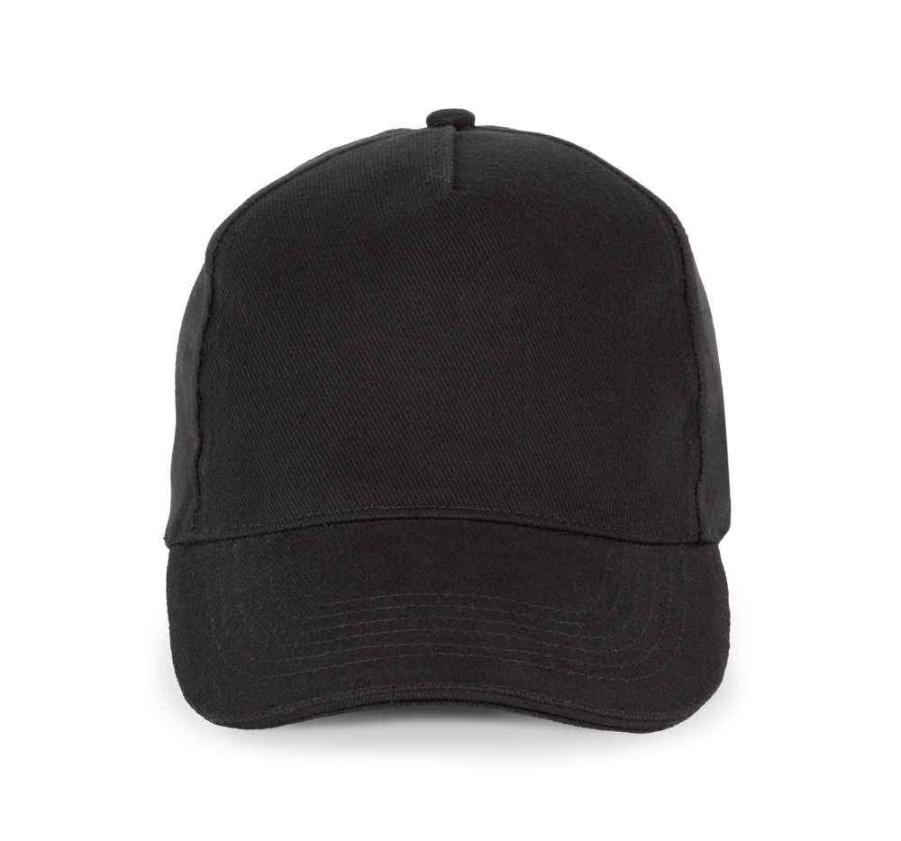 100% katoen. Pet met 5 panelen. Verstelbare sluiting met metalen gesp en zelfblokkerende lus.