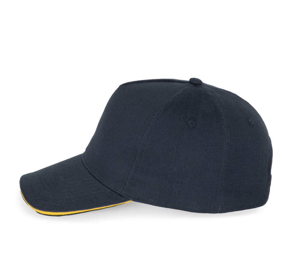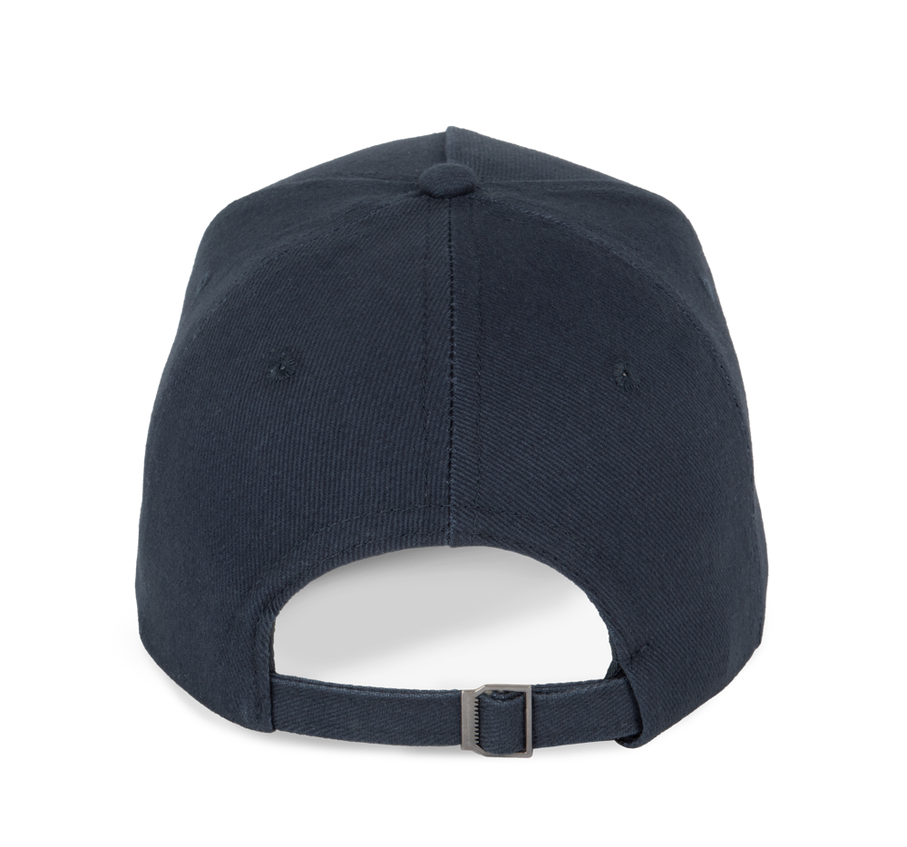 100% katoen. Pet met 5 panelen. Verstelbare sluiting met metalen gesp en zelfblokkerende lus.