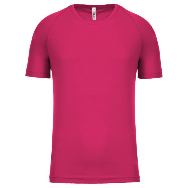 100% polyester. Sneldrogende lichte stof. Ronde hals. Nektape. Raglan mouwen met overstiksels. Afwerking met dubbele stiksels aan de mouwuiteinden en onderkant.