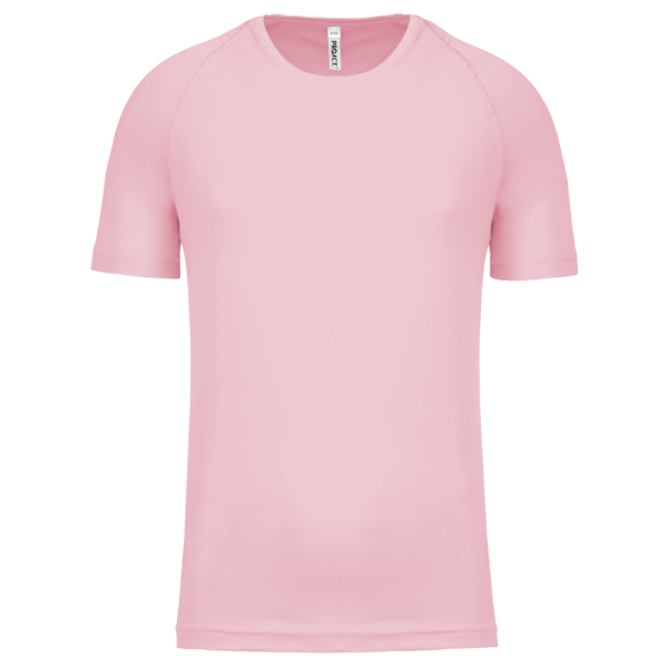 100% polyester. Sneldrogende lichte stof. Ronde hals. Nektape. Raglan mouwen met overstiksels. Afwerking met dubbele stiksels aan de mouwuiteinden en onderkant.