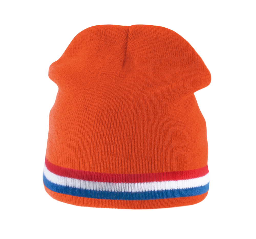 100% acryl. Gebreide muts met tweekleurig gecontrasteerd boord aan de rand.