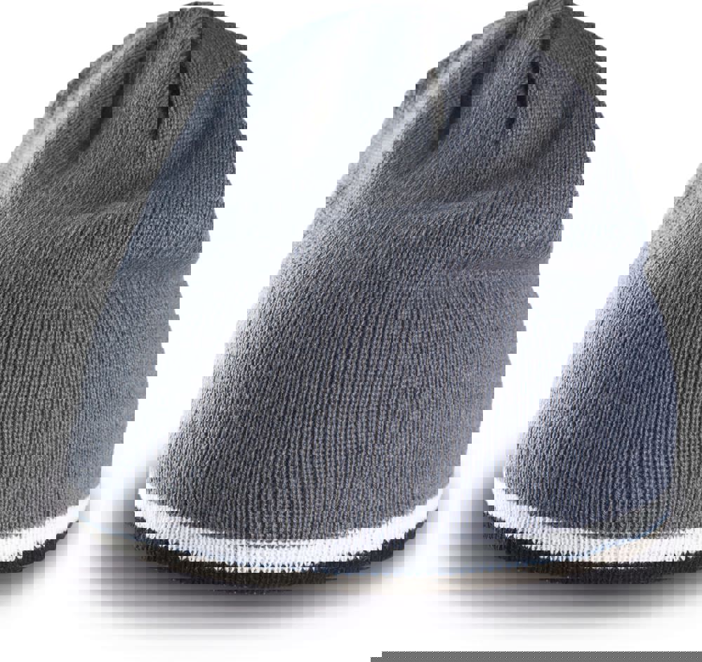 100% acryl. Gebreide muts met tweekleurig gecontrasteerd boord aan de rand.