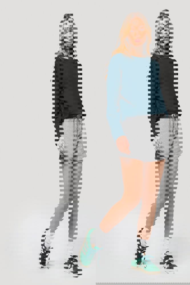 91% katoen / 9% polyester (Light Grey Heather: 87% katoen / 9% polyester / 4% viscose). Fleece “French Terry”. Voelt heel zacht aan. Casual, losse snit met brede halsopening. Nektape met visgraatmotief. Onafgewerkte boorden onderaan. Dubbel stiksel aan de mouwuiteinden.