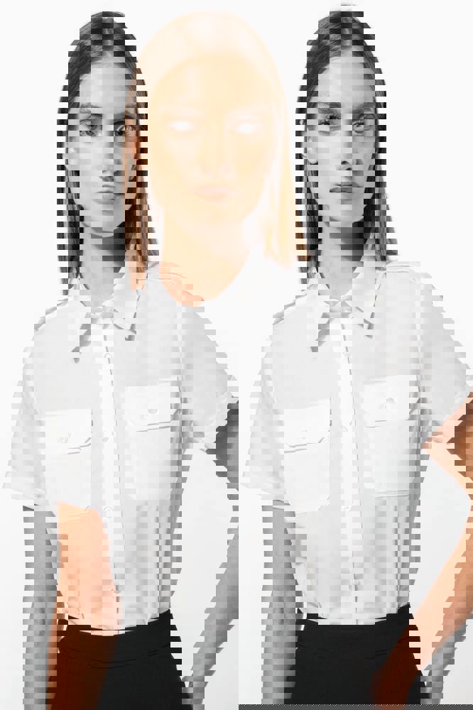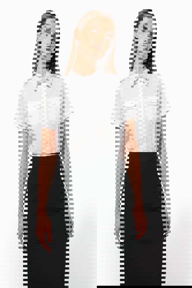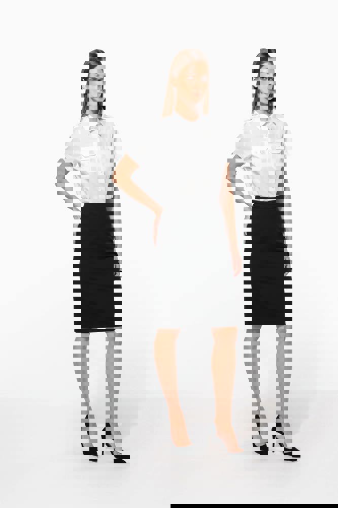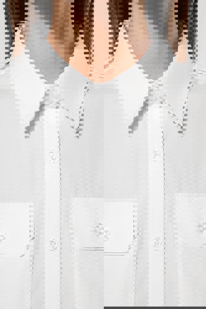 65% polyester / 35% popelinekatoen. Gemakkelijk in onderhoud (EasyCare-behandeling). Toon-op-toon knopen. 2 borstzakken met klep, waarvan aan de linkerkant een met plaats voor een pen. Knooplijst op de schouders om galons te bevestigen (epauletten niet meegeleverd). Afgewerkt met omslag aan de mouwuiteinden.