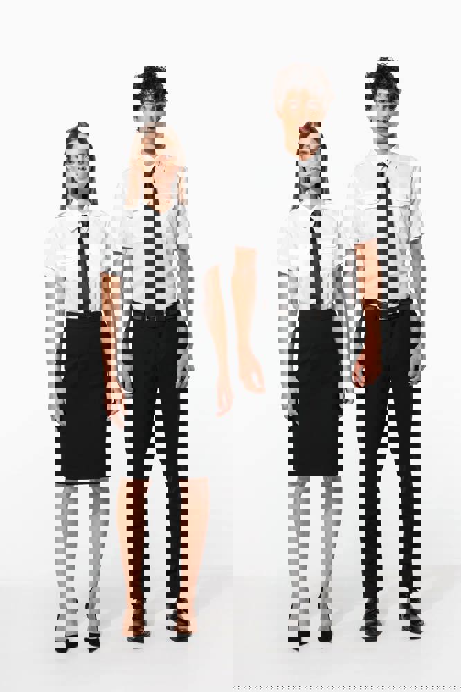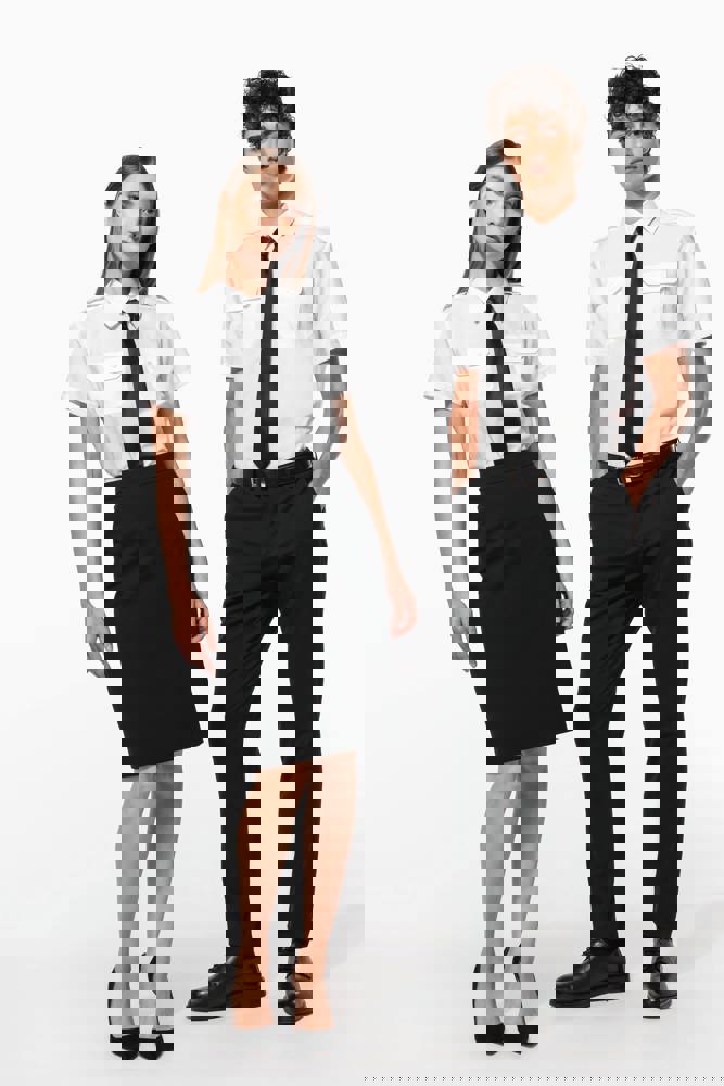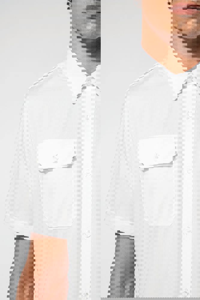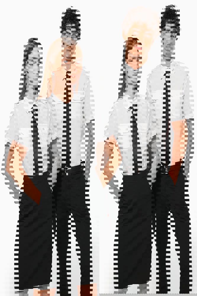 65% polyester / 35% popelinekatoen. Gemakkelijk in onderhoud (EasyCare-behandeling). Toon op toon knopen. 2 borstzakken met klep, waarvan aan de linkerkant een met plaats voor een pen. Ruimteplooi op de achterkant. Knooplijst op de schouders om galons te bevestigen (epauletten niet meegeleverd). Afgewerkt met omslag aan de mouwuiteinden.