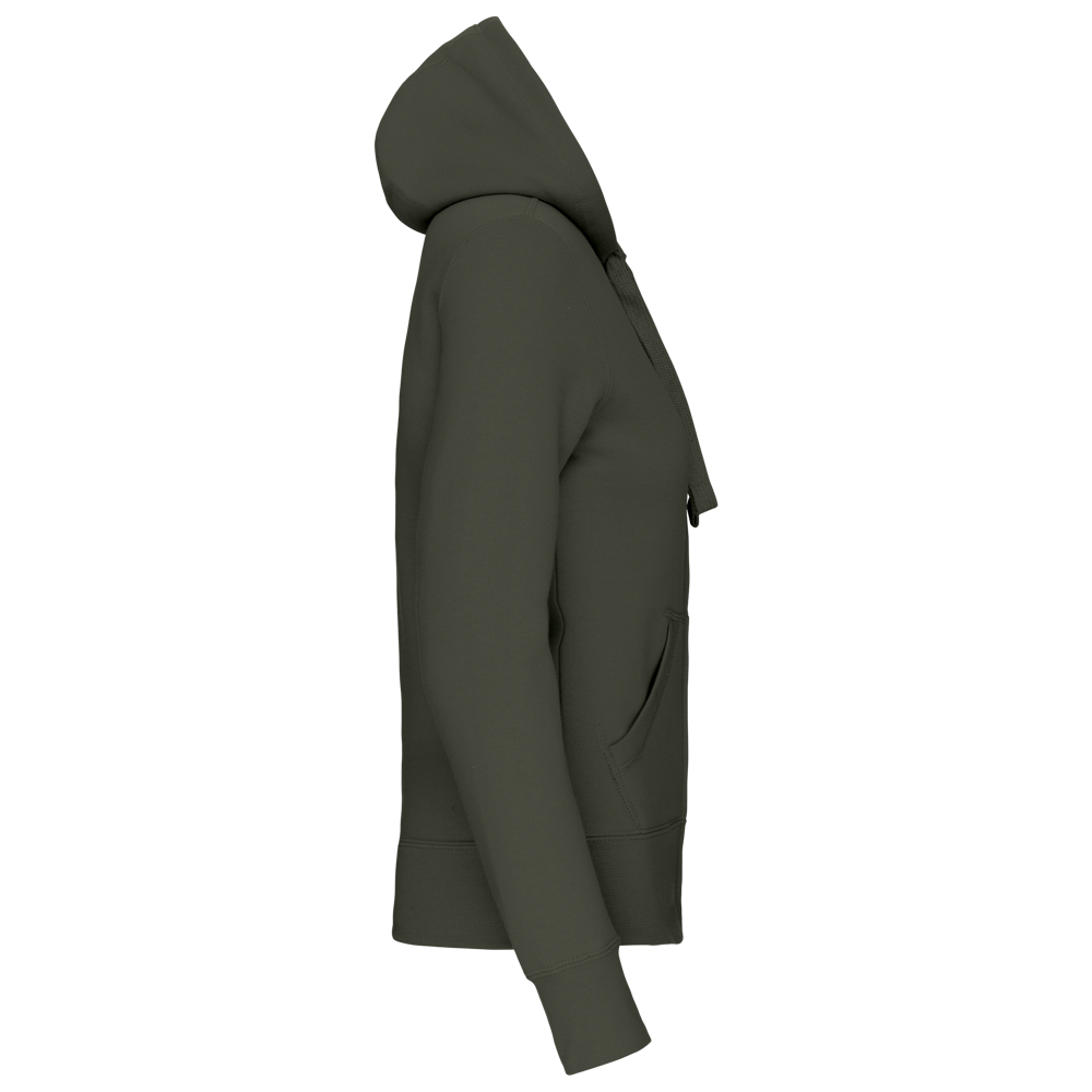80% katoen / 20% polyester (Ash Heather: 79% katoen / 20% polyester / 1% viscose). Buitenoppervlak 100% gekamd katoen. Geborsteld fleece aan de binnenkant. Nektape in contrasterende kleur aan de halsopening (Navy voor kleur Oxford Grey en Ash Heather ; Oxford Grey voor alle andere kleuren). Gevoerde capuchon in honinggraatstructuur. Kangoeroezakken. Ribboord aan mouwuiteinden en onderkant kledingstuk. Ritssluiting.