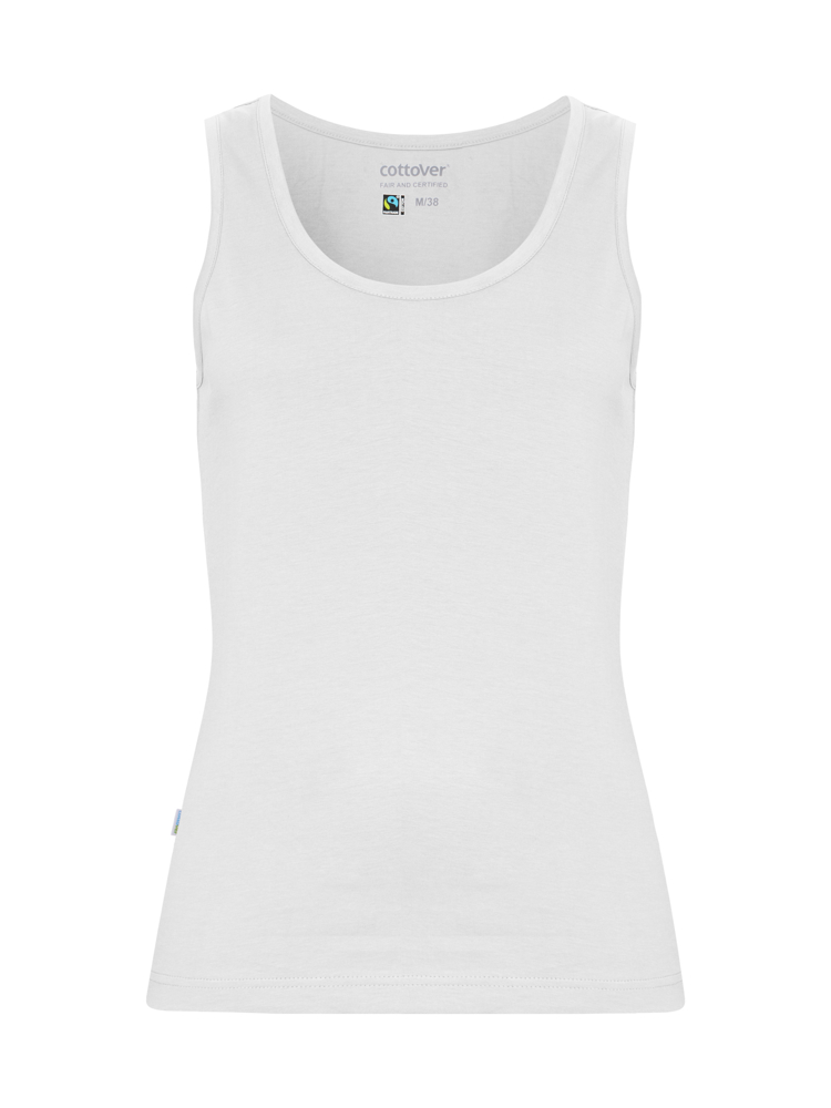 Classic tanktop met brede schouderbanden in een netjes licht getailleerd model. Bies langs de halslijn en armsgaten. Gedrukt label op de achterkant van de nek.