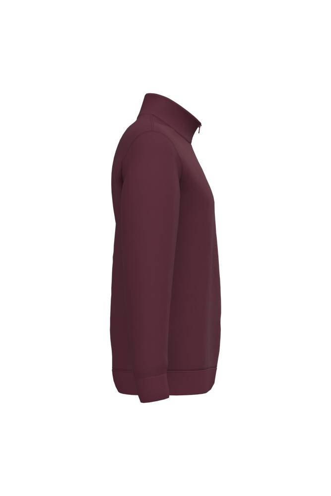80% katoen / 20% polyester. Gekamd katoen. Geborsteld fleece aan de binnenkant. Ingezette mouwen. Ritshals met toon op toon nektape aan de binnenkant. Ribboord aan mouwuiteinden en aan de onderkant.