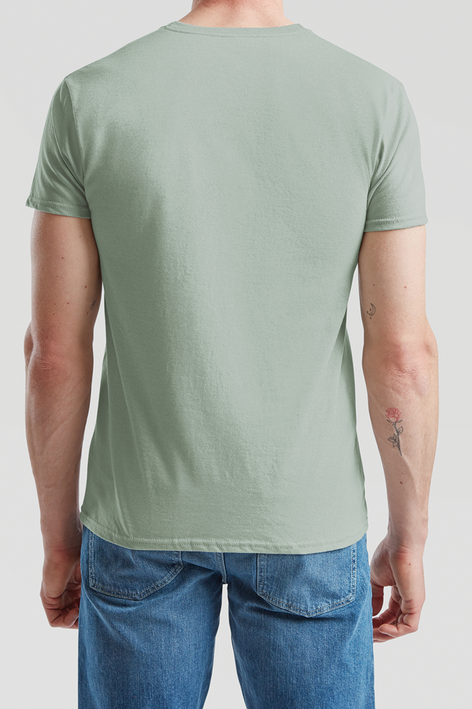 100% gekamd ringgesponnen katoen (Heather Grey: 97% katoen / 3% polyester en Dark Heather Grey: 52% katoen / 48% polyester). Ronde kraag met nektape aan de binnenkant. Slim snit en voelt zacht aan.