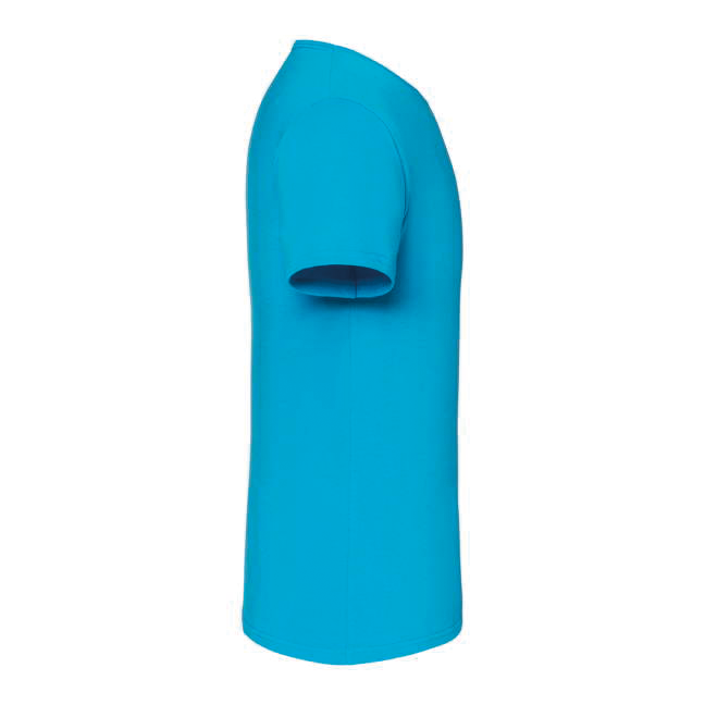100% gekamd ringgesponnen katoen (Heather Grey: 97% katoen / 3% polyester en Dark Heather Grey: 52% katoen / 48% polyester). Ronde kraag met nektape aan de binnenkant. Slim snit en voelt zacht aan.