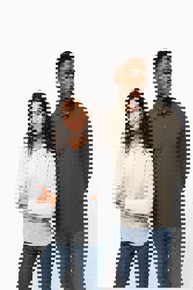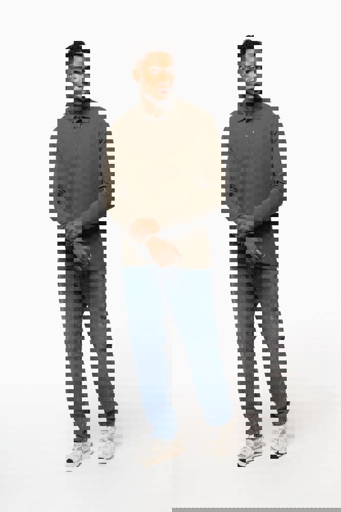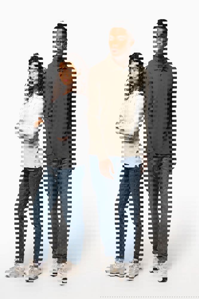 100% gekamd katoen - wasbaar op 60°C (Oxford Grey : 90% katoen / 10% viscose - wasbaar op 40°C). Piqué. Kraag in rib. Nektape en zijsplitjes in Oxford Grey voor alle kleuren behalve Oxford Grey daarvan zijn ze Dark Grey. Knooplijst met 3 knopen. Afwerking met dubbele stiksels aan de onderkant. Mouwuiteinden in rib.