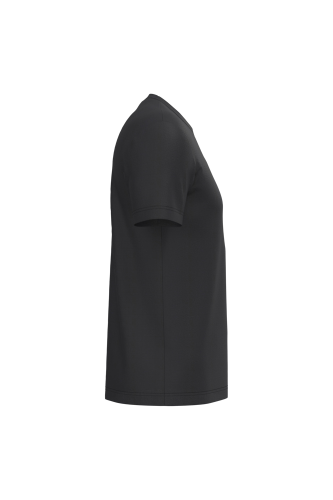 Effen kleuren : 100% katoen. Oxford Grey : 90% katoen / 10% viscose. Gekamd enzymbehandeld katoen. Rechte snit. Nektape (toon-op-toon voor White, Dark Grey voor Oxford Grey en Oxford Grey voor de overige kleuren). Afwerking met dubbele stiksels.