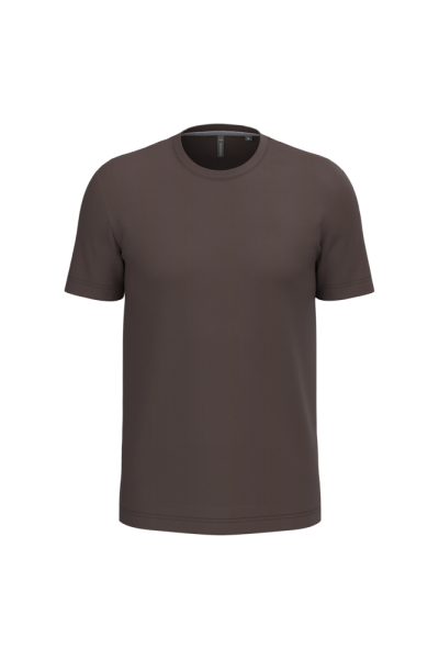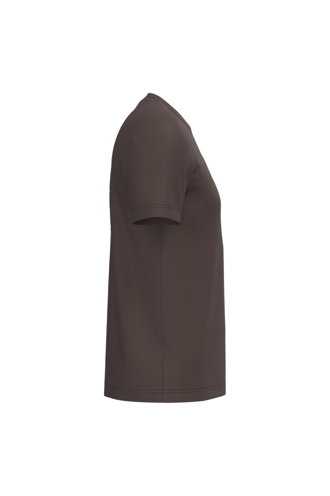 Effen kleuren : 100% katoen. Oxford Grey : 90% katoen / 10% viscose. Gekamd enzymbehandeld katoen. Rechte snit. Nektape (toon-op-toon voor White, Dark Grey voor Oxford Grey en Oxford Grey voor de overige kleuren). Afwerking met dubbele stiksels.