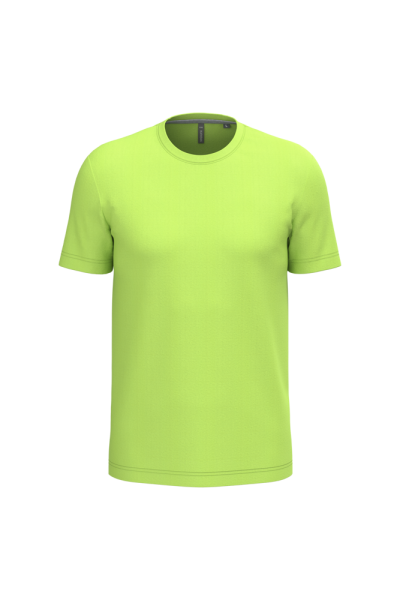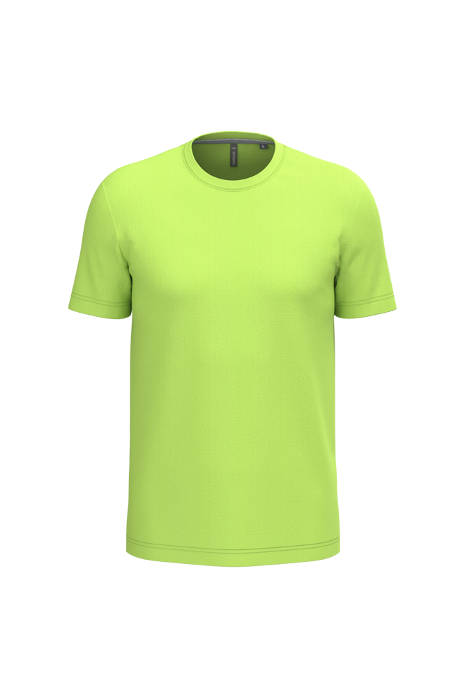 Effen kleuren : 100% katoen. Oxford Grey : 90% katoen / 10% viscose. Gekamd enzymbehandeld katoen. Rechte snit. Nektape (toon-op-toon voor White, Dark Grey voor Oxford Grey en Oxford Grey voor de overige kleuren). Afwerking met dubbele stiksels.