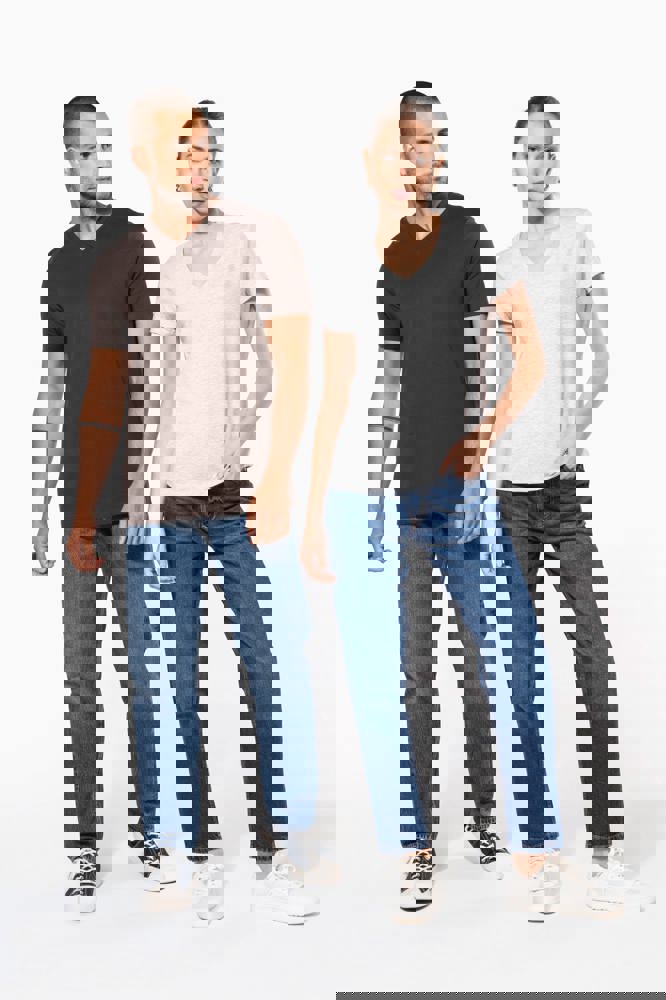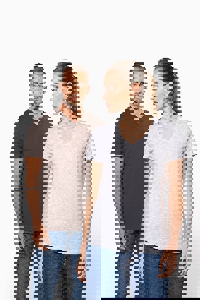 100% enzymbehandeld gekamd katoen. Ash Heather : 98% katoen / 2% viscose. Oxford Grey : 90% katoen / 10% viscose. Nektape (toon-op-toon voor White, Dark Grey voor Oxford Grey en Oxford Grey voor de overige kleuren). Rechte snit. Afwerking met dubbele stiksels.