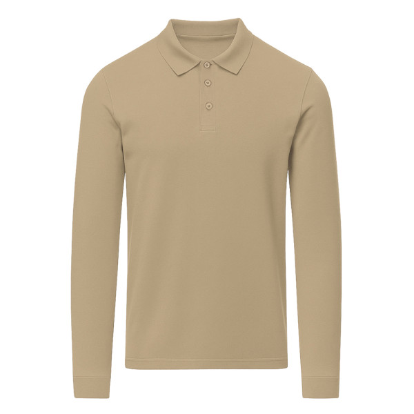 Unisex poloshirt met lange mouwen, gemaakt van piquéstof. Kraag en boorden in 1x1 rib met elastaan voor betere pasvorm en comfort. Sluiting met drie knopen in bijpassende kleur en verstevigde nektape.