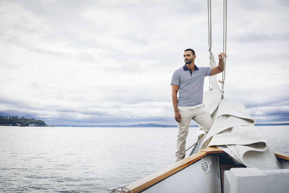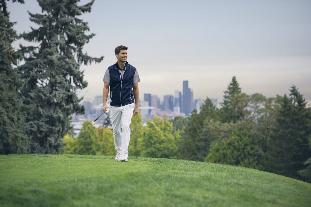 Materiaal: 95% gerecycled polyester, 5% elastaan. Microstreep piqué. CB DryTec™ UPF 20+.