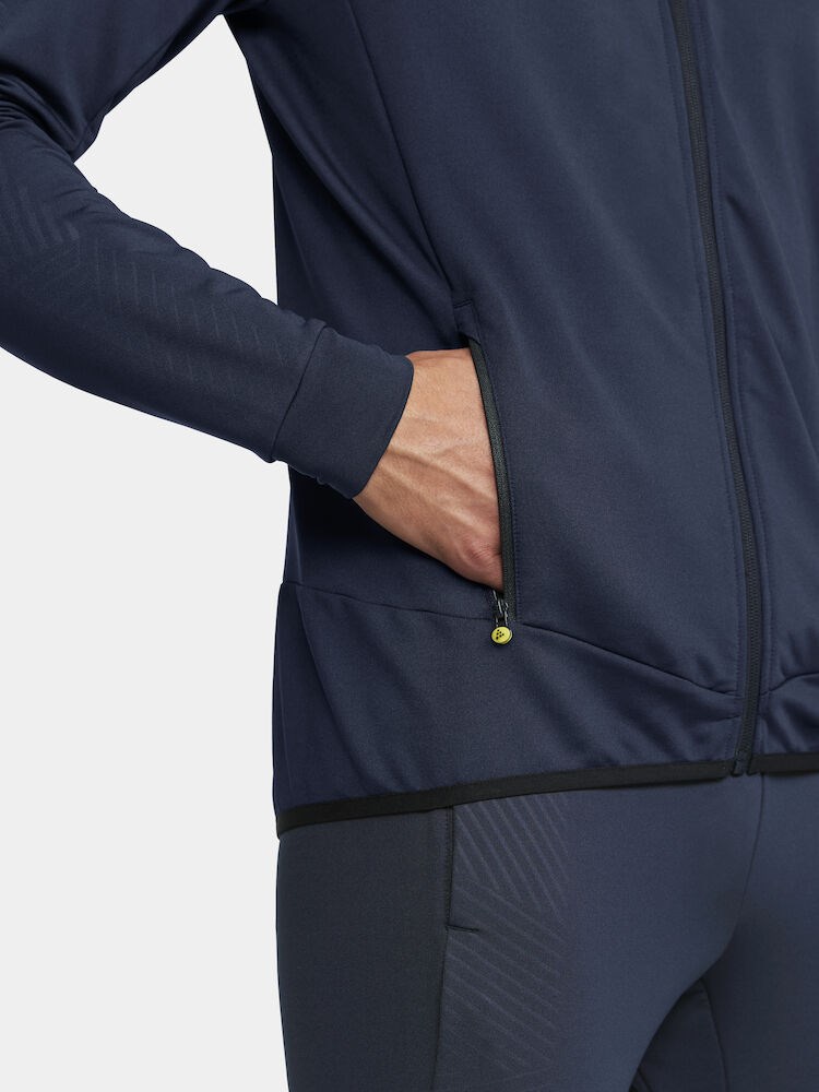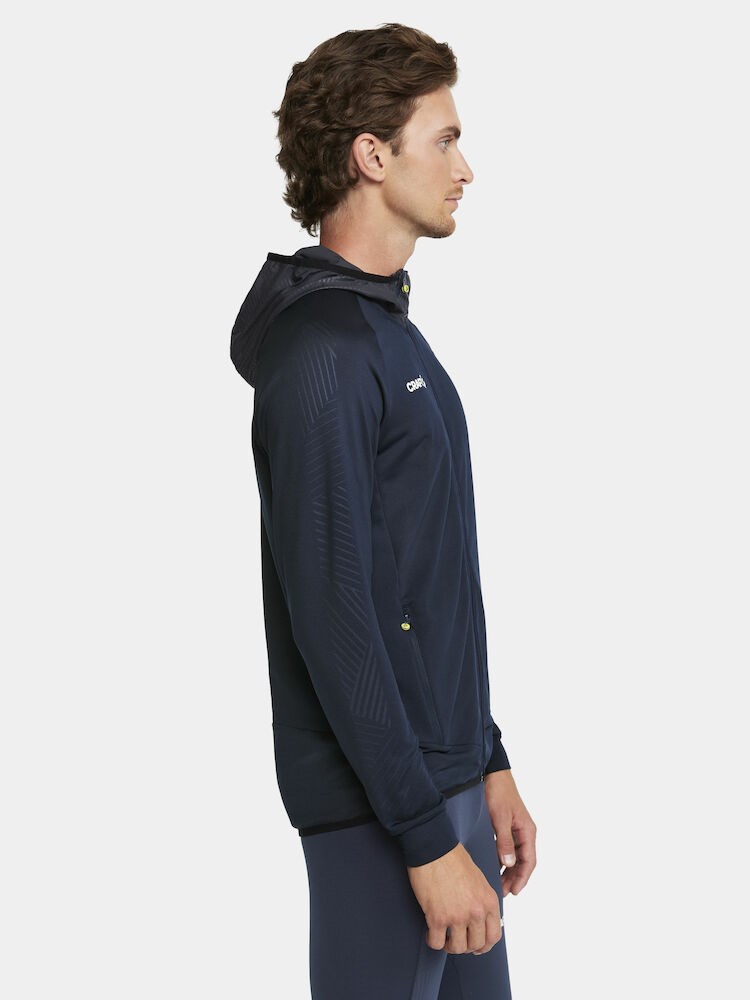 EXTEND Full Zip is a highly functional training garment designed for maximum performance at the highest level of sports. This premium jersey is made of thin, very elastic and recycled polyester fabric offering exceptional moisture transport and superb freedom of movement. In addition, the full zip jersey features side panels with structured fabric surface, two zip side pockets, woven hood, and loop to securely fasten the hood when not in use. Tight fit.