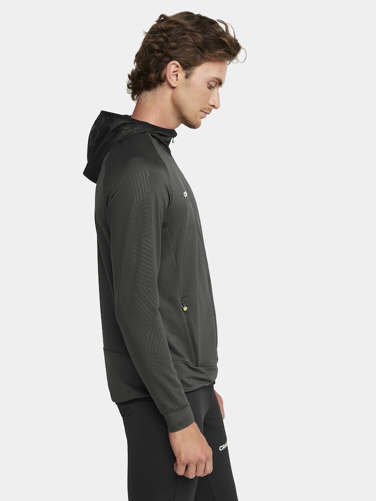 EXTEND Full Zip is a highly functional training garment designed for maximum performance at the highest level of sports. This premium jersey is made of thin, very elastic and recycled polyester fabric offering exceptional moisture transport and superb freedom of movement. In addition, the full zip jersey features side panels with structured fabric surface, two zip side pockets, woven hood, and loop to securely fasten the hood when not in use. Tight fit.
