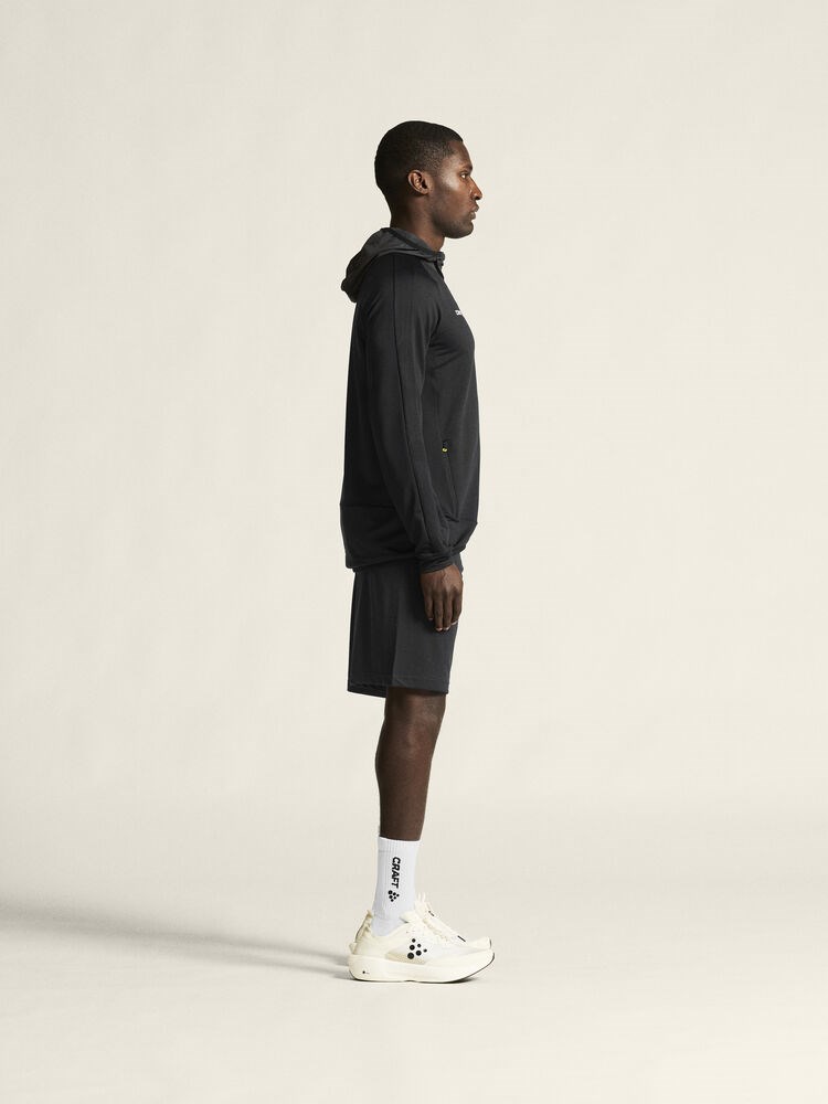 EXTEND Full Zip is a highly functional training garment designed for maximum performance at the highest level of sports. This premium jersey is made of thin, very elastic and recycled polyester fabric offering exceptional moisture transport and superb freedom of movement. In addition, the full zip jersey features side panels with structured fabric surface, two zip side pockets, woven hood, and loop to securely fasten the hood when not in use. Tight fit.