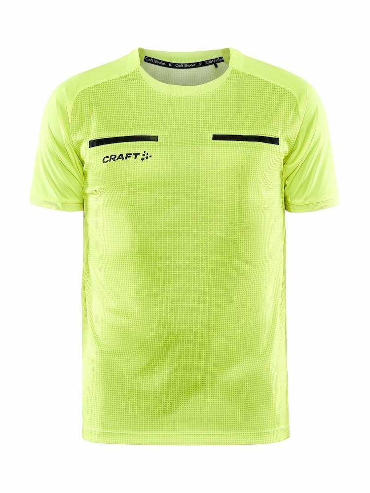 Evolve Referee Jersey is a lightweight referee tee that offers great moisture transport during intense matches. The tee is made of recycled fabrics in order to decrease the environmental footprint and comes with mesh panels at the armpits for enhanced ventilation. In addition, the tee features raglan sleeves for excellent freedom of movement and two chest pockets with Velcro closure. • Lightweight and functional fabrics • Recycled Polyester for a reduced environmental footprint • Mesh at armpits for enhanced ventilation • Raglan sleeves for optimal freedom of movement • Rib-knit collar and sleeve ends • Two chest pockets with Velcro closure