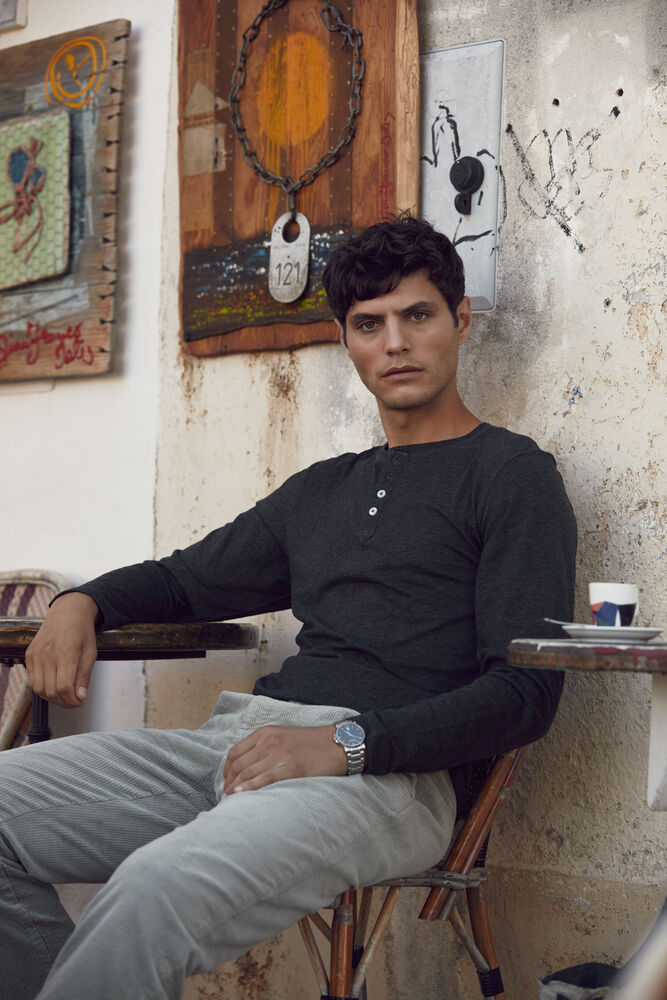 Eigentijds T-shirt met lange mouwen en knoopsluiting voor een unieke uitstraling. Het T-shirt is gemaakt van hoogwaardig garen voor een optimaal draagcomfort en een fraai onderscheidend vermogen. De behandelingen met softener en enzymen zorgen ervoor dat het T-shirt zacht en glad aanvoelt.