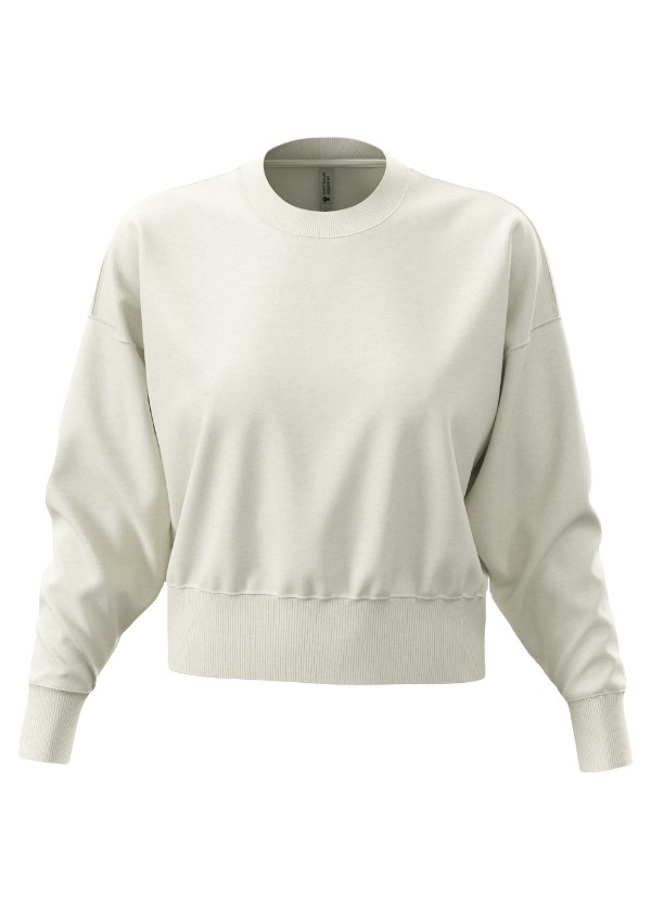 Next Level Apparel cropped sweater voor haar. Gemaakt van een zware mix van gekamd katoen en gerecycled polyester met een oversized korte pasvorm.