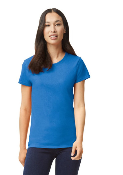 Gildan Heavy Cotton dames T-shirt met korte mouw. Het katoen wat in het shirt is verwerkt is van gecertificeerd U.S. Cotton. Door de comfortabele pasvorm en een goede prijs-kwaliteitverhouding perfect te gebruiken als basis T-shirt.