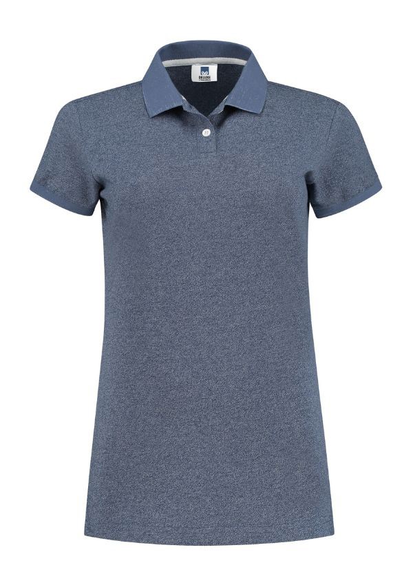 Lemon&Soda pique dames polo met korte mouwen en langere lengte. De polo in mooie heather kleuren is perfect te bedrukken of te borduren.