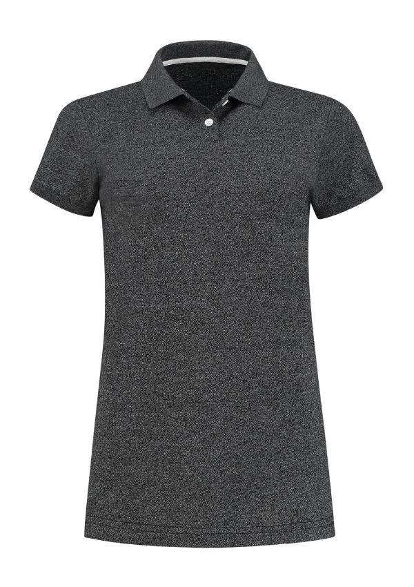 Lemon&Soda pique dames polo met korte mouwen en langere lengte. De polo in mooie heather kleuren is perfect te bedrukken of te borduren.