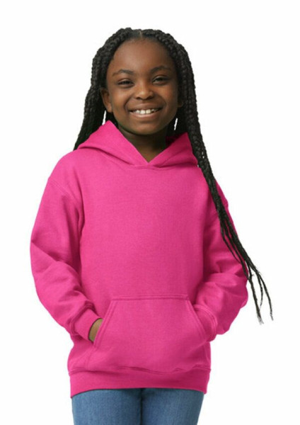 Gildan HeavyBlend Sweater met capuchon met buidelzak voor kinderen in de maten 104 t/m 176. Een populaire hoodie dankzij de uitstekende prijs-kwaliteitverhouding. Het verwerkte katoen in de sweater is van gecertificeerd U.S. Cotton. Het voldoet aan de CPSIA-vereisten.