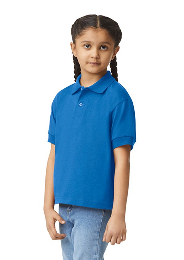 Gildan Dry Blend Jersey Poloshirt voor kinderen met korte mouw. Het verwerkte katoen in het shirt is van gecertificeerd U.S. Cotton. Comfortabel door het vochtafvoerende Dry Blend materiaal. Ideaal om te bedrukken of te borduren. Het voldoet aan de CPSIA-vereisten.