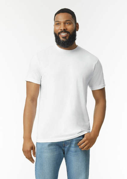Gildan Softstyle CVC (Chief Value Cotton)unisex T-shirt met korte mouw gemaakt van 60% ringgesponnen katoen en 40% polyester. Glad printoppervlak door de hoge steekdichtheid. Subtiele heather textuur bij alle kleuren, behalve Pitch Black en White.