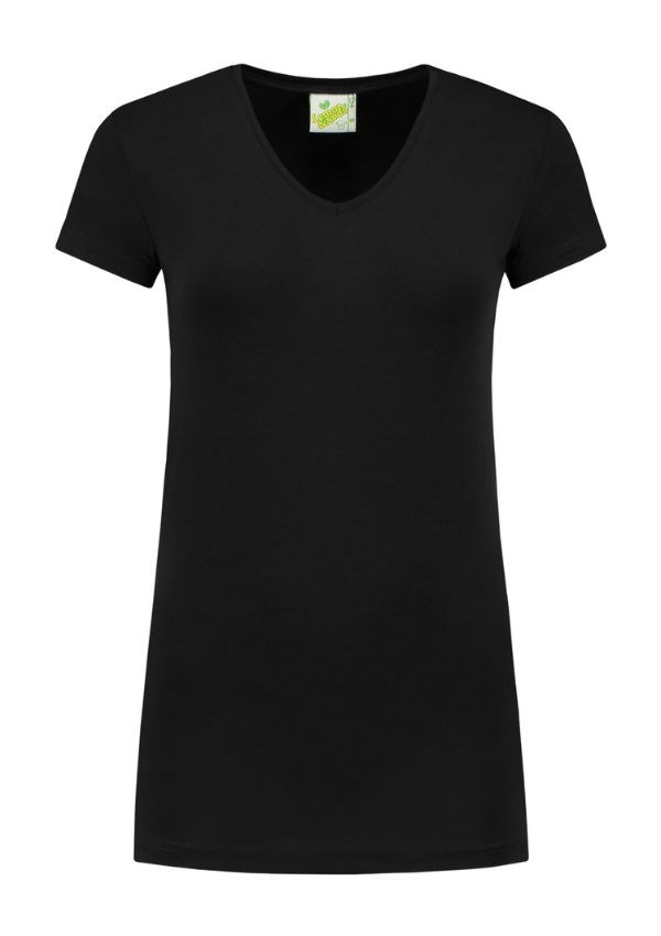 Lemon & Soda dames V-hals T-shirt met korte mouwen in meerdere kleuren. Een comfortabel T-shirt dankzij de langere lengte en het aansluitende model van de single jersey. De kleuren zijn ideaal om te bedrukken en te borduren en perfect in te zetten als werkkleding.