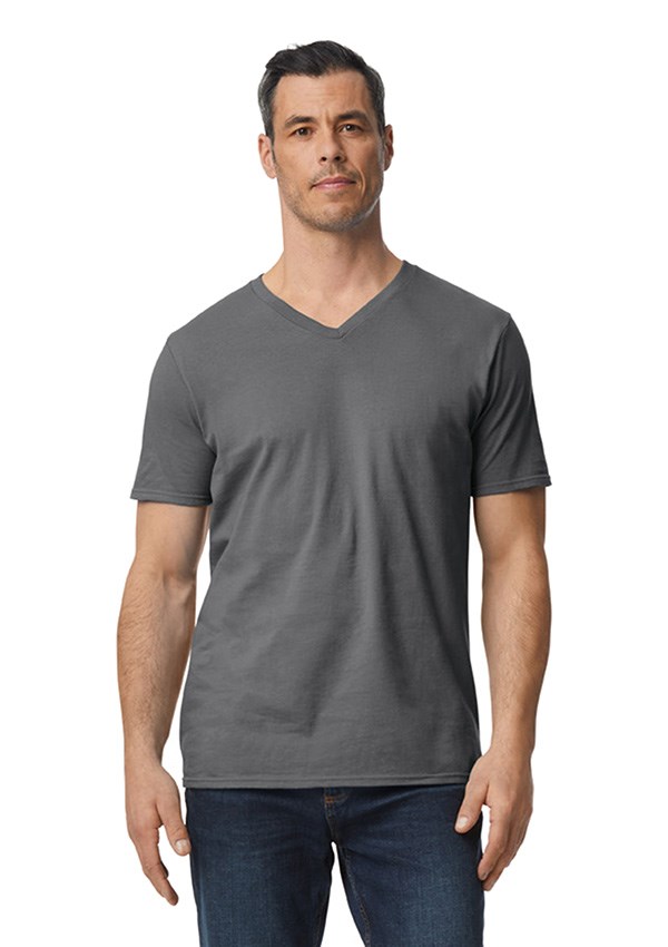 Gildan Softstyle unisex T-shirt met korte mouw en V-hals. Het shirt heeft een hoge steekdichtheid voor een glad printoppervlak biedt, ideaal voor DTG.