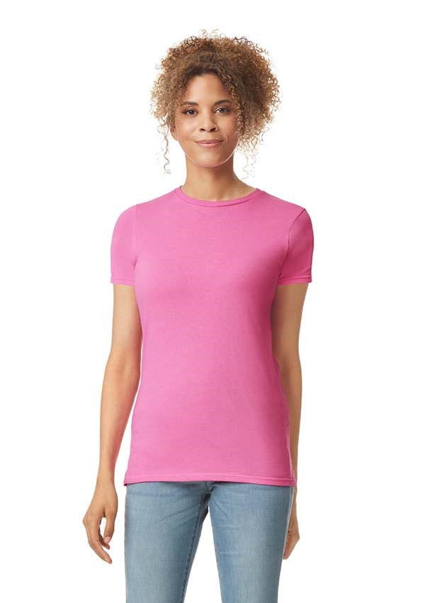 Gildan Softstyle dames T-shirt met korte mouw. De mooie pasvorm en goede prijs/kwaliteitverhouding maakt dit tot een perfect promotie shirt. ideaal voor DTG door de hoge steekdichtheid wat zorgt voor een glad printoppervlak.