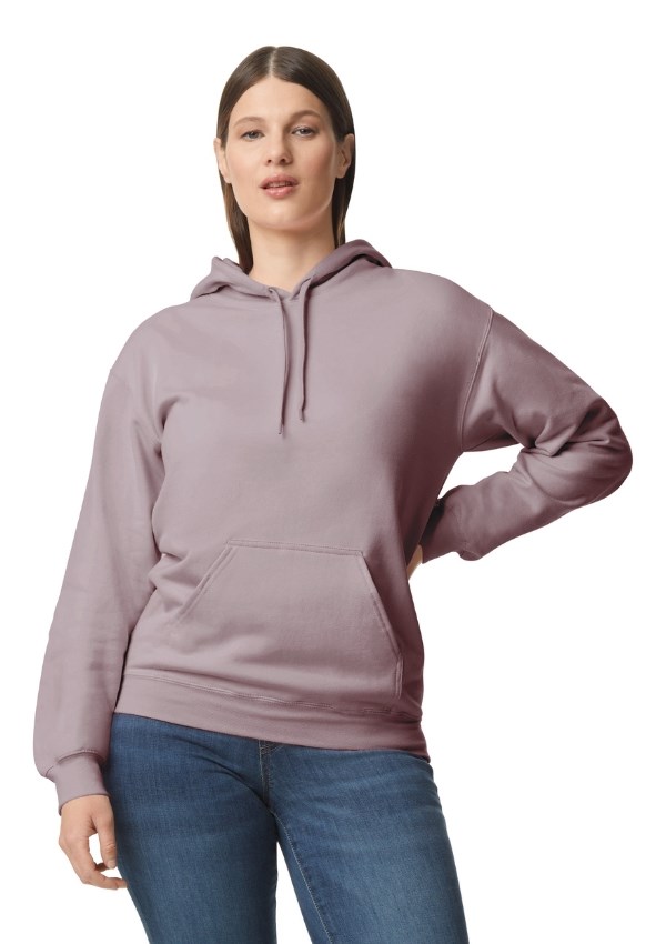 Gildan Softstyle Midweight Sweater met capuchon en buidelzak. Gemaakt van een zachte ringgesponnen katoenmix. De hoodie heeft een geborstelde binnenkant met een 100% katoenen buitenkant, ideaal voor DTG-printen.