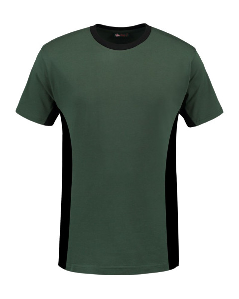 Lemon & Soda workwear unisex T-shirt met korte mouwen en ronde hals. Contrast kleuren bij de halsopening enzijkanten van het T-shirt. Behandeld met een bio-wassing voor extra glad oppervlakte.