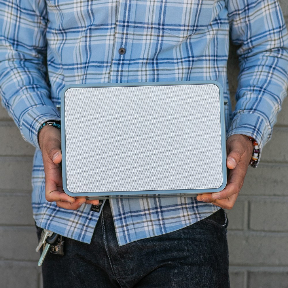 Dankzij de V5.1 draadloze verbinding overbrugt deze gerecyclede ABS luidspreker een afstand van 15 meter. Snel opgeladen bij 20V/3A, met een vermogen van 150W. Een 15600mAh batterij zorgt voor 30 uur speeltijd @60dB SPL. Het is een harmonieuze mix van technologie en geluid. Oplaadtijd van ongeveer 3 uur.