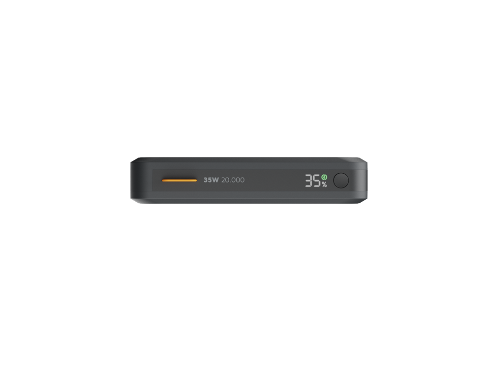 Deze krachtige maar compacte Powerbank heeft een batterij-capaciteit van 20.000mAh en beschikt over twee USB-C PD poorten en één USB-A poort. De 35W USB-C PD output is perfect voor het snel opladen van bijvoorbeeld je smartphone of tablet. De Powerbank is grotendeels gemaakt van gerecycled plastic, wat het een duurzamer product maakt.