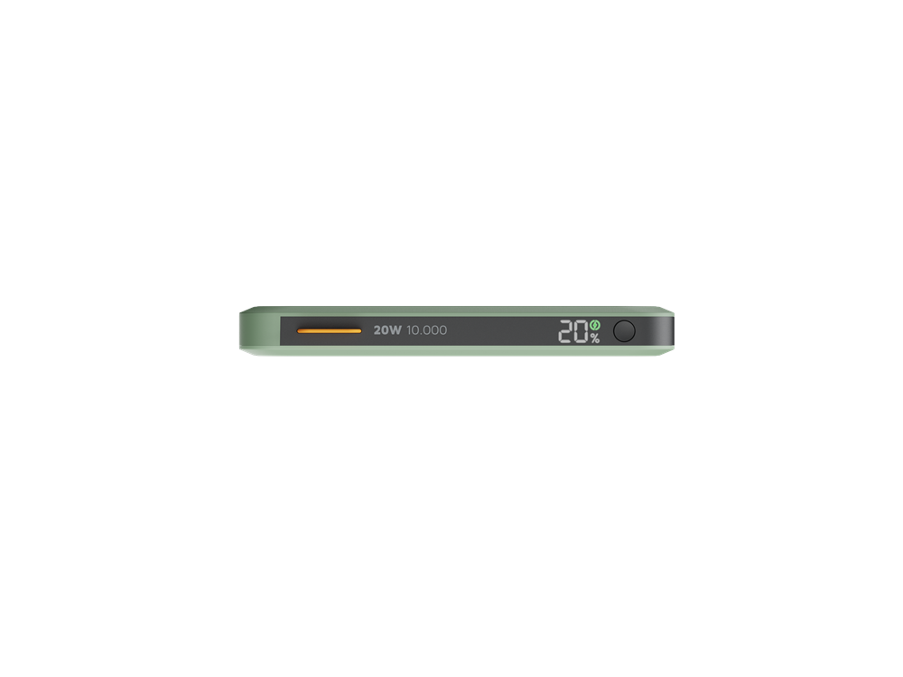 Deze 10.000mAh Powerbank heeft twee USB-C poorten en één USB-A poort. De 20W USB-C PD-uitgang is perfect voor het snel opladen van allerlei mobiele apparaten. De behuizing van de Powerbank is grotendeels gemaakt van gerecycled plastic, ter ondersteuning van een duurzame toekomst.