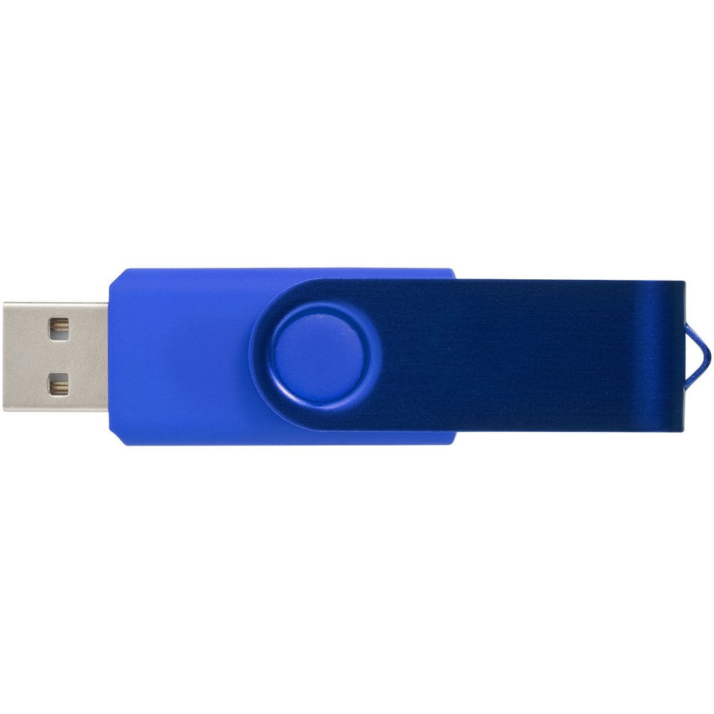 Alle bestanden bij de hand hebben en de naamsbekendheid vergroten is eenvoudig met de Rotate Metallic USB flash drive. De plastic flash drive heeft een 360 graden draaibare aluminium behuizing, waardoor de USB flash drive gemakkelijk open en dicht gedraaid kan worden en vuil uit de USB poort wordt gehouden. Daarnaast zorgt de 'tone on tone' metallic afwerking ervoor dat de USB flash drive extra in het oog springt. Met het haakje aan de behuizing kan de gebruiker een sleutelhanger bevestigen (niet meegeleverd). Deze USB flash drive is verkrijgbaar in een breed scala aan capaciteiten, maten en kleuren.