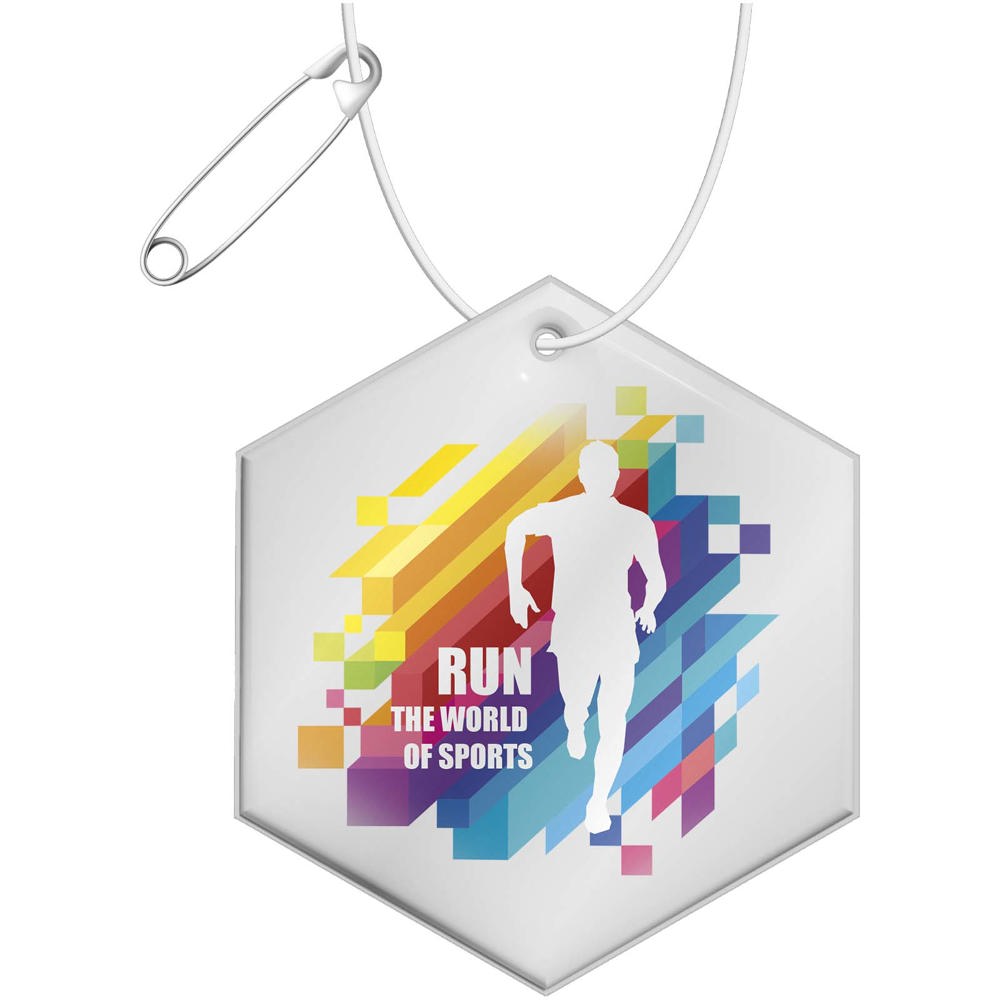 Bevestig deze reflecterende hanger aan kleding, tassen of andere buitenspullen om de zichtbaarheid in het donker te vergroten. Door deze gecertificeerde hangers te gebruiken maak je verkeersveiligheid een kenmerk van je merk. De hangers worden geleverd met een wit koord en een veiligheidsspeld om eenvoudige te bevestigen. Verkrijgbaar in verschillende vormen en maten, en in witte of gele kleur. Voorzien van een fluorescerende RFX™ zachte reflecterende folie van ftalaatvrij PVC. Materialen zijn getest in overeenstemming met SVHC (zeer zorgwekkende stoffen) REACH-kandidaatslijst en zijn vrij van ftalaten. De hangers zijn CE getest en goedgekeurd volgens EN 17353 Type B 1. Elk item wordt geleverd met een 10 cm lange koord en een speld om het gemakkelijk aan een tas, jas etc. te bevestigen. Verpakt samen met een informatieblad in een zakje van glasine, een materiaal gemaakt van houtpulp Gemaakt in Europa.