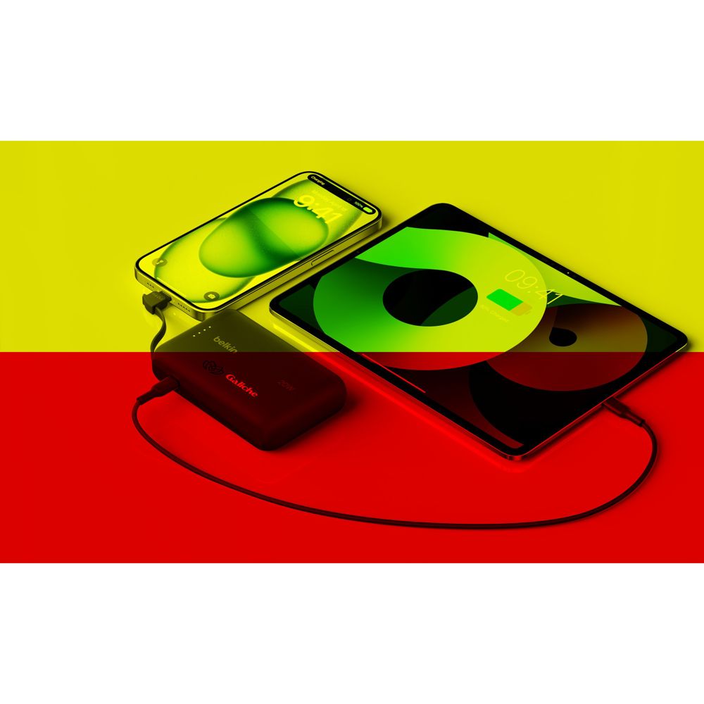 Powerbank 10.000 mAh met geïntegreerde kabel, van het merk Belkin. De behuizing (exclusief de kabel) is gemaakt van 72% gerecyclede materialen. Met passthrough-opladen: apparaten opladen terwijl de powerbank zelf wordt opgeladen. Laad snel twee apparaten tegelijk op met maximaal 20W vermogen via de geïntegreerde USB-C-kabel en de extra poort. Deze powerbank biedt tot 43 uur extra batterijduur in een compacte en lichtgewicht behuizing. Met LED-indicatielampje. 100% plasticvrije verpakking. Gemaakt van plastic dat na gebruik is gerecycled. Inclusief gebruiksaanwijzing. Per stuk verpakt.